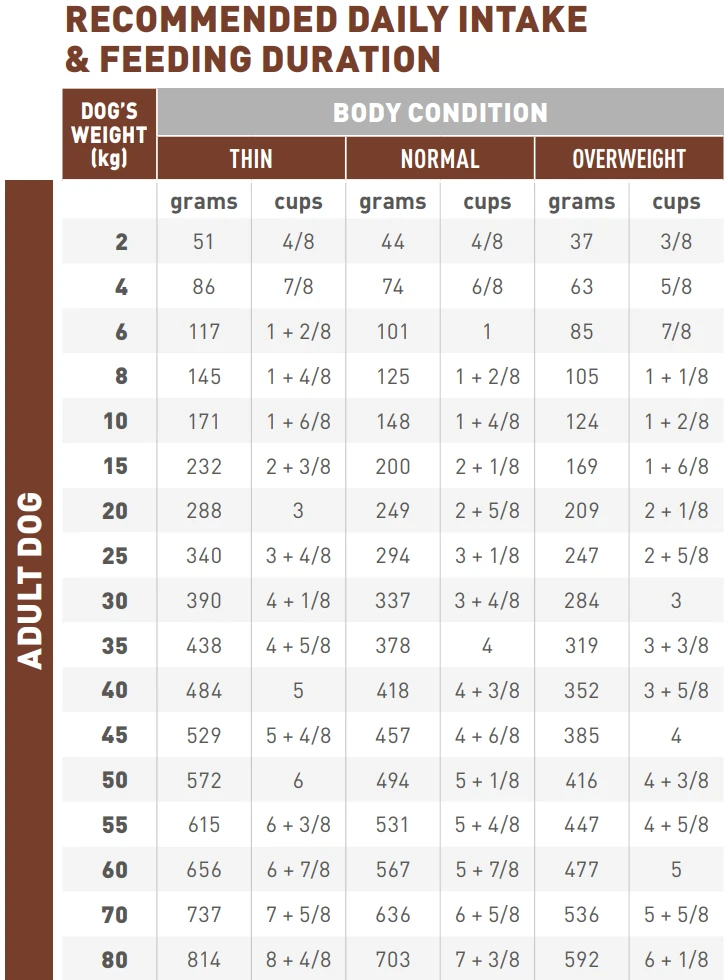 Dankzij de hoge energiedichtheid kan met een kleine portie volledig in de energiebehoefte van de hond worden voorzien.